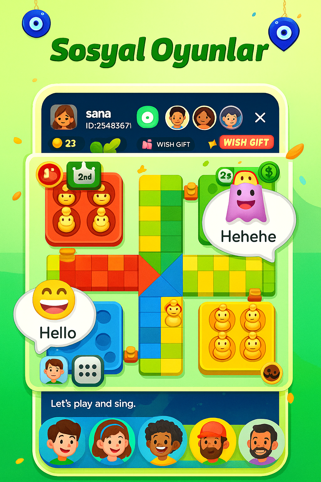 Taka benzeri sohbet uygulamalarında arkadaşlarınla Ludo oyna, sohbet et ve hediyeler kazan. Canlı sohbet odalarında yeni insanlarla tanış, oyun oynarken coin biriktir ve sıralamada yüksel. Hızlı, eğlenceli ve ödüllü sosyal oyun deneyimi seni bekliyor!